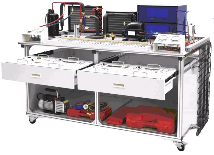1.該裝置集制冷空調系統安裝、冰箱系統安裝、制冷系統電接線、壓力檢漏、抽真空、 充注制冷劑與運行調試于一體,包含了制冷系統維修的全部步驟,能滿足實訓教學、實際工程訓練及職業技能競賽的需要。