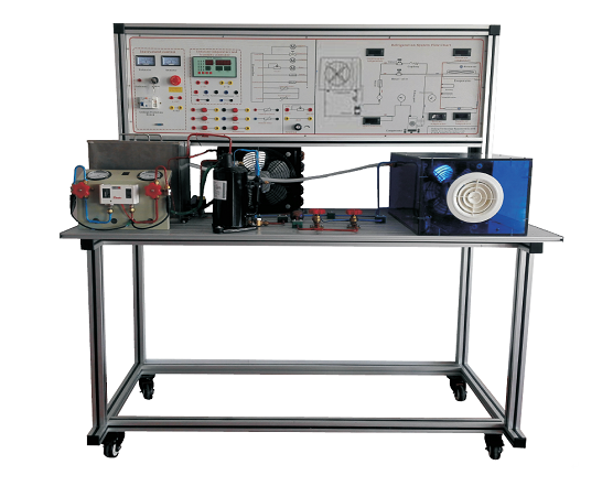 恒溫恒濕機組系統實驗裝置是采用直流式空氣處理系統,并配置壓縮機、風冷冷凝器、蒸發器、加濕器、電加熱器和風管等真實部件,可測量壓力、溫度、濕度等過程參數。通過對本裝置的實驗,能使學生熟悉直流式系統的空氣處理過程,并得到熱工測量和計算的基本訓練。本裝置適用于“制冷空調原理及應用”、“制冷空調技術”、“建筑電氣控制技術”等課程的實驗教學。