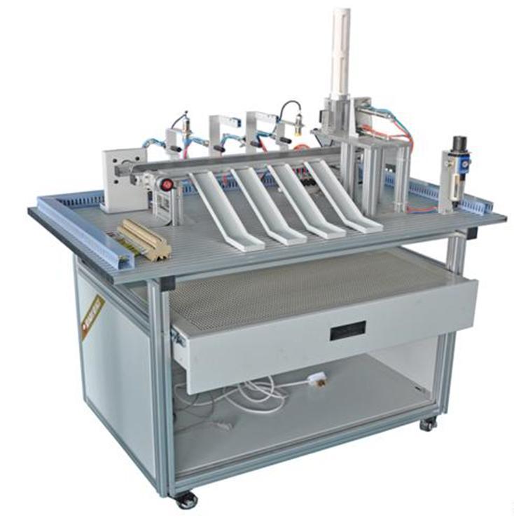 1.環行生產線主體由底板、實訓桌(型材結構)、傳送鏈、滾筒、物料及電氣控制等部分組成。