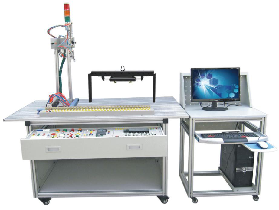 本循環(huán)送料系統(tǒng)實訓裝置是針對機電一體化實訓教學的要求而研發(fā)的,它集PLC控制、位置控制、檢測、工控組態(tài)技術于一體的實訓教學裝置,通過傳感器信號采集、PLC編程、對交流電機、直流電機、送料小車進行較復雜的開關量控制、位置控制及時序邏輯控制,實現(xiàn)小車送料和裝料、物料提升的生產(chǎn)流水線運動過程,完成循環(huán)送料的功能。適合于機械制造及自動化、機電一體化、自動化、電氣工程等專業(yè)的《機電傳動與控制》、《運動控制》、《機電一體化技術》、《計算機控制技術》、《檢測與轉(zhuǎn)換技術》、《可編程控制技術》等課程開設實訓課。