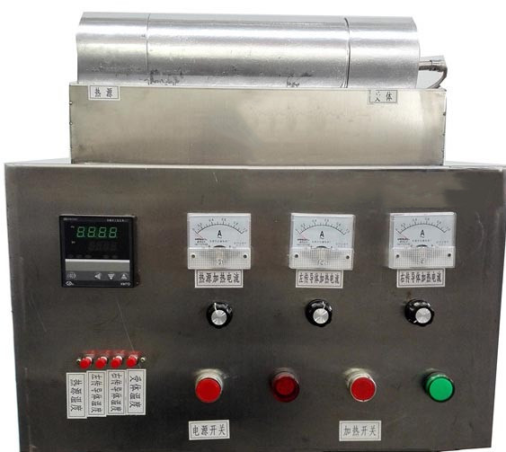 2、加熱器功率:3組×200W ,加熱溫度:≤100℃。 通過對(duì)三組加熱器電壓的調(diào)整使熱源、傳導(dǎo)體的測(cè)溫點(diǎn)恒定在一定溫度,然后測(cè)量輻射后的溫度。